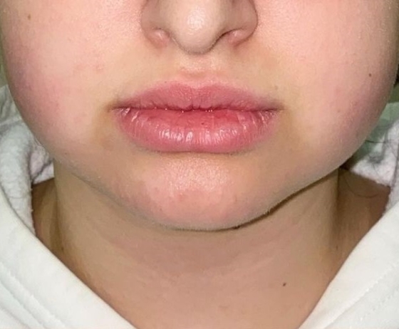 - W przypadku obecności "woreczków" tłuszczowych na podbródku, pojawienia się pęcherzyków;