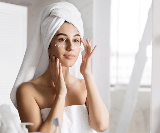 Po zabiegu naskórek wymaga ochrony przed promieniowaniem słonecznym, dlatego na twarz klientki jest nakładany krem z filtrem SPF.